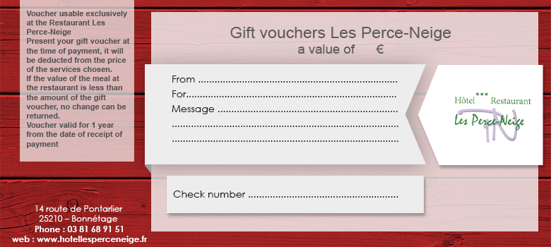 Offer a gift voucher at the Hotel-Restaurant Les Perce-Neige in Bonnétage near Morteau (25, Doubs) in Franche-Comté.